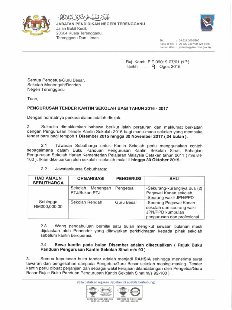 Pengurusan Tender Kantin Sekolah Bagi Tahun 2016 2017 Pdf