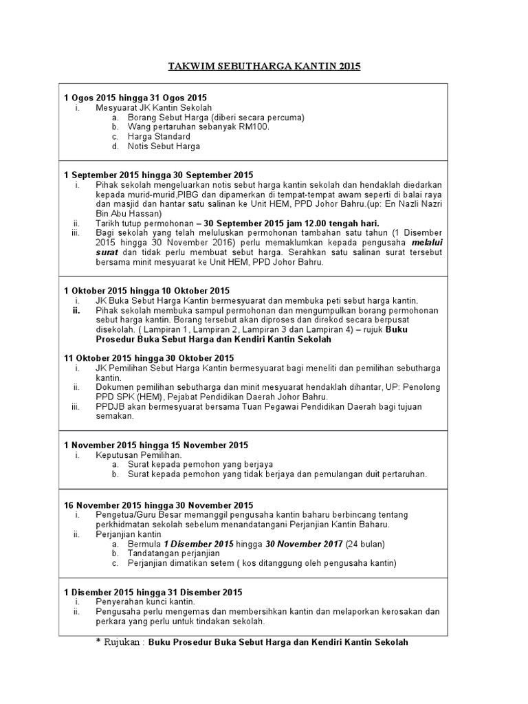Takwim Sebutharga Kantin 2015 Pdf