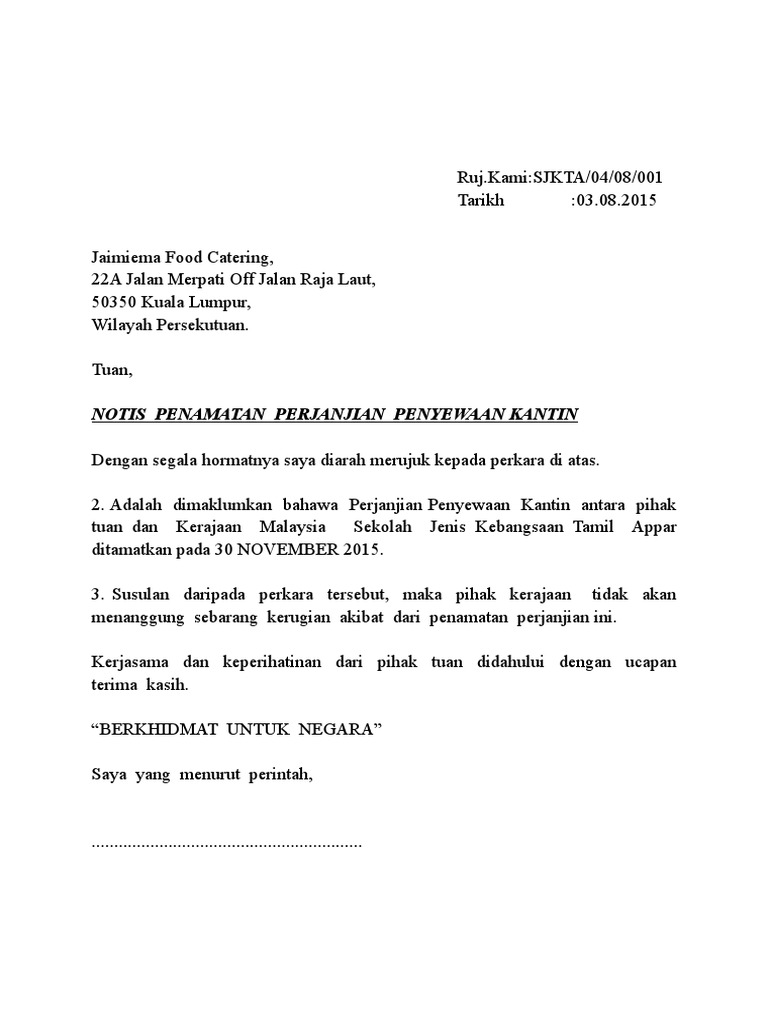 Notis Penamatan Kantin Sekolah Pdf